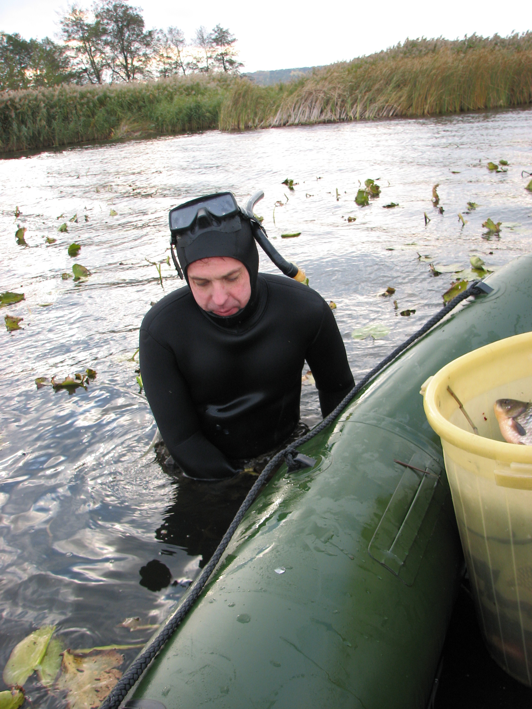 Прежде выгрузим рыбу, иначе в лодку не залезть