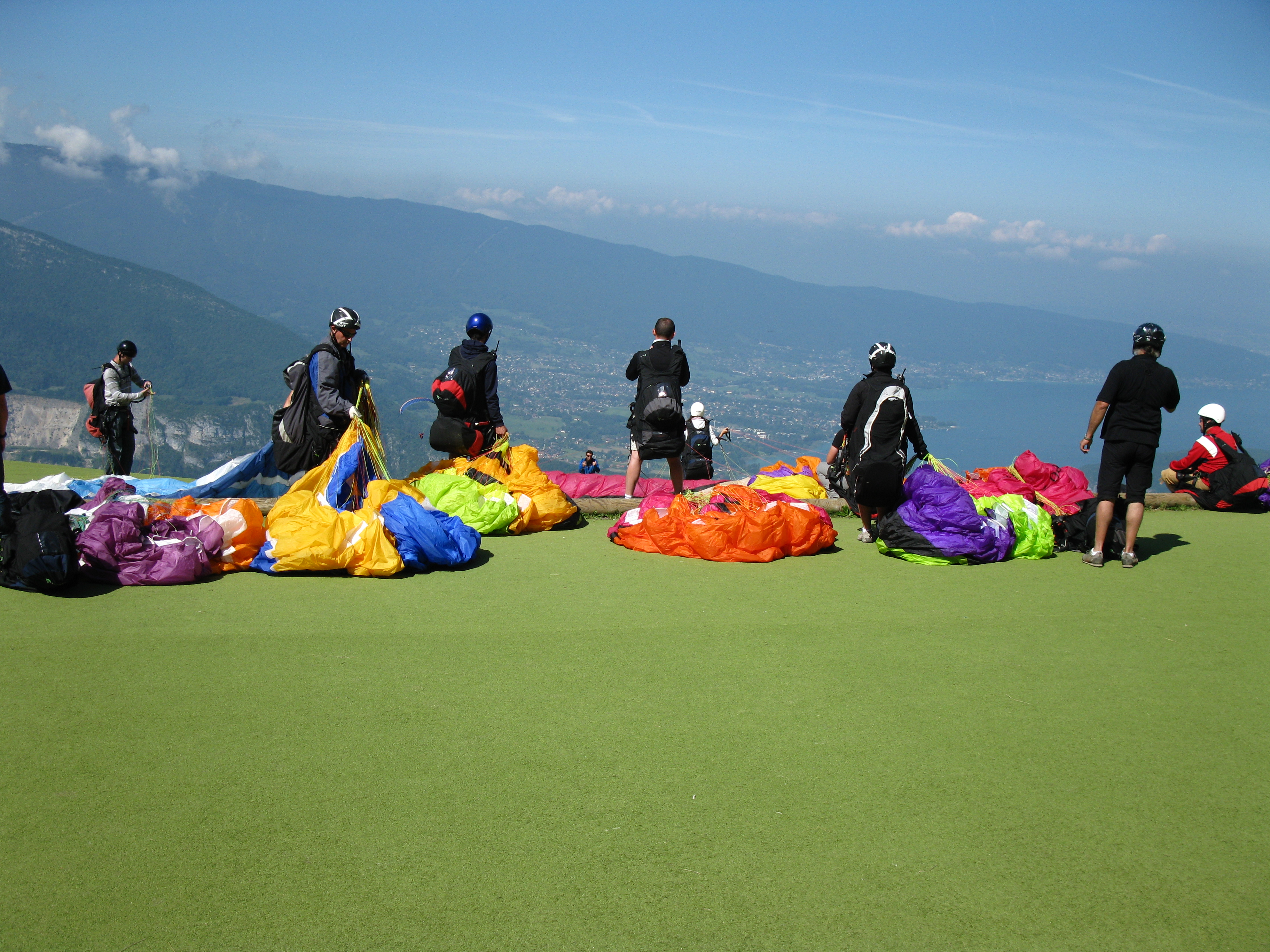 Вчера (понедельник, 26.08) дали погоду. Летать можно было с 12 до 17 без перерыва. Десятки крыльев в воздухе, очередь на относительно небольшом пятачке старта. Плюс тандемы с покатушниками. Тем не менее все достаточно быстро и организованно стартовали.