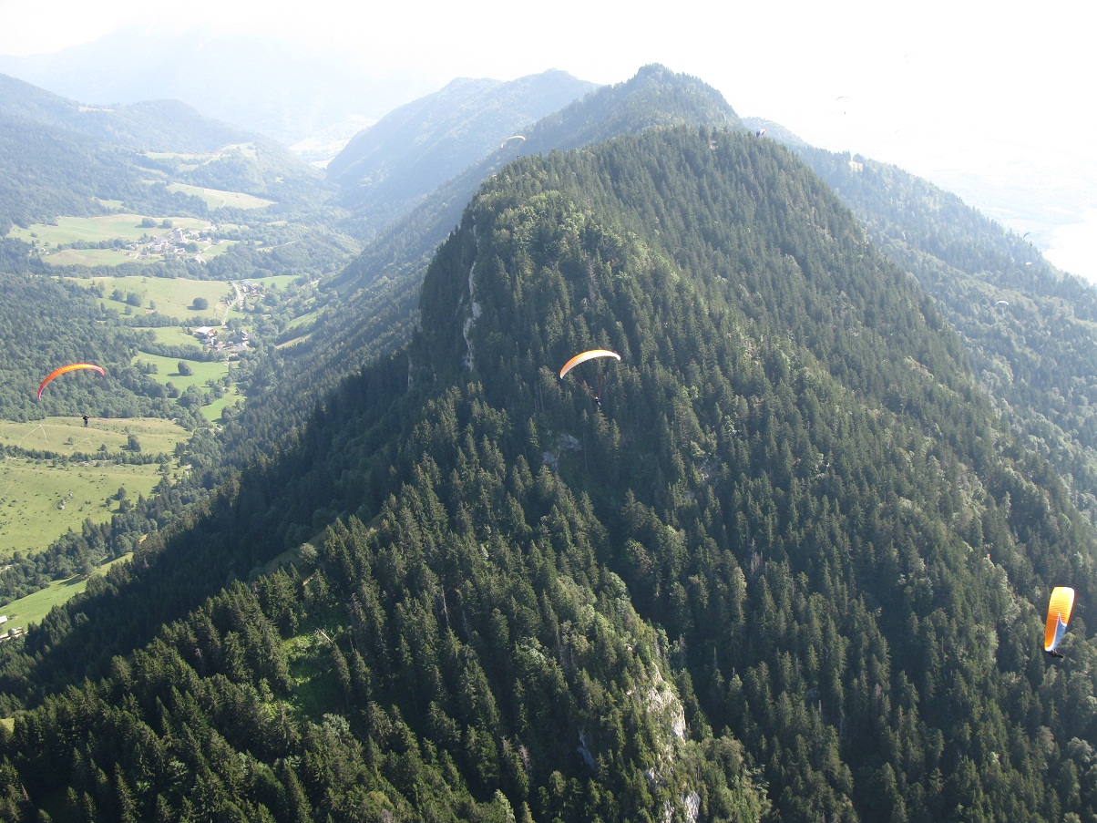 В воздухе немного неспокойно, термики узкие. Удалось выбраться выше стратового хребта (старт - 850м, хребет продолжается до 1250м) Было желание перепрыгнуть на следующий хребет перелетев через ущелье, но пока воздержался. Перелетел озеро...