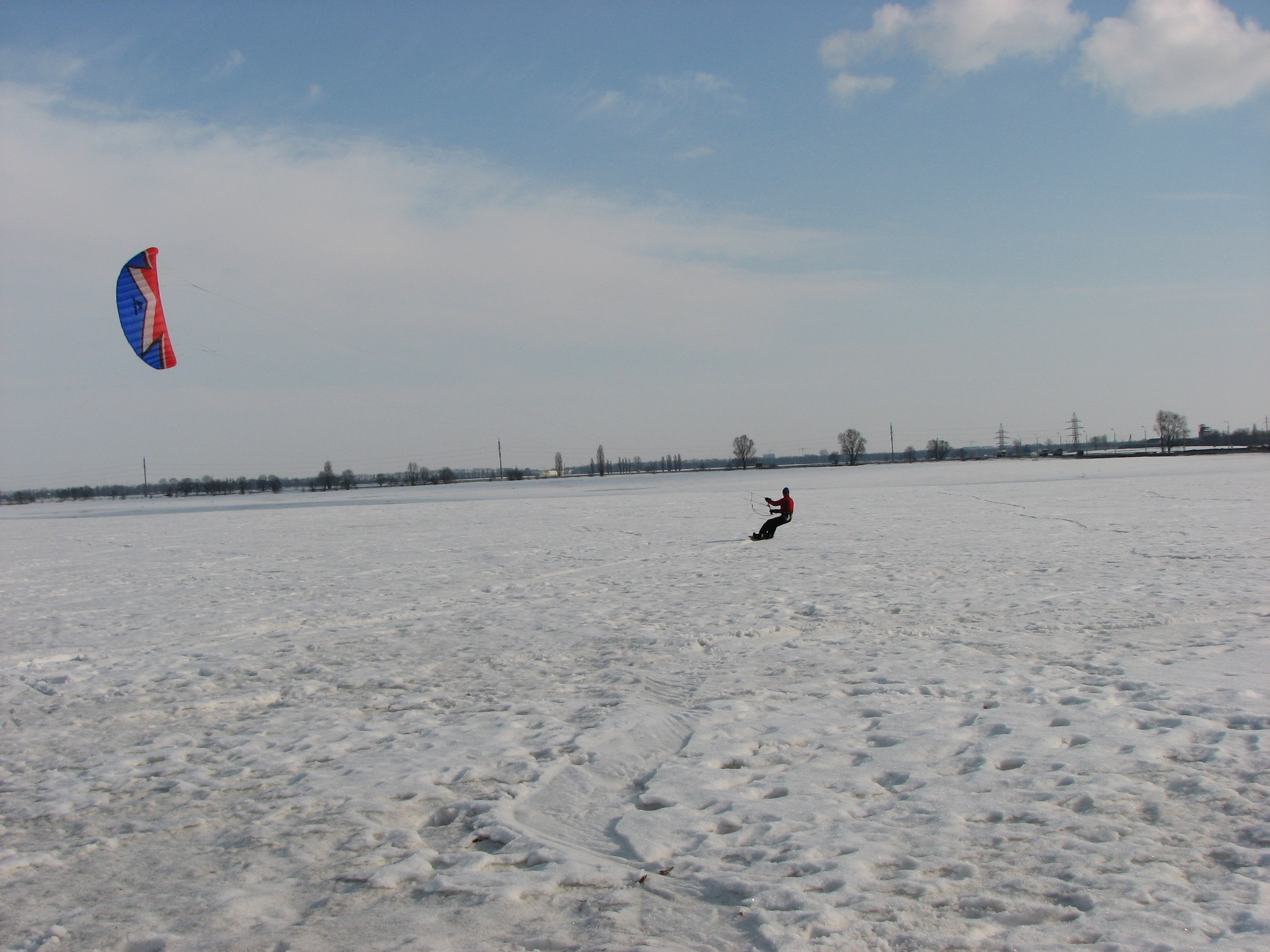 Прикольно - разогнаться, просерфить по воде, вот только на кромке лужи, легко неожиданно подскользнуться на льду и замочить трапецию :mrgreen: готовим гидрики ;)